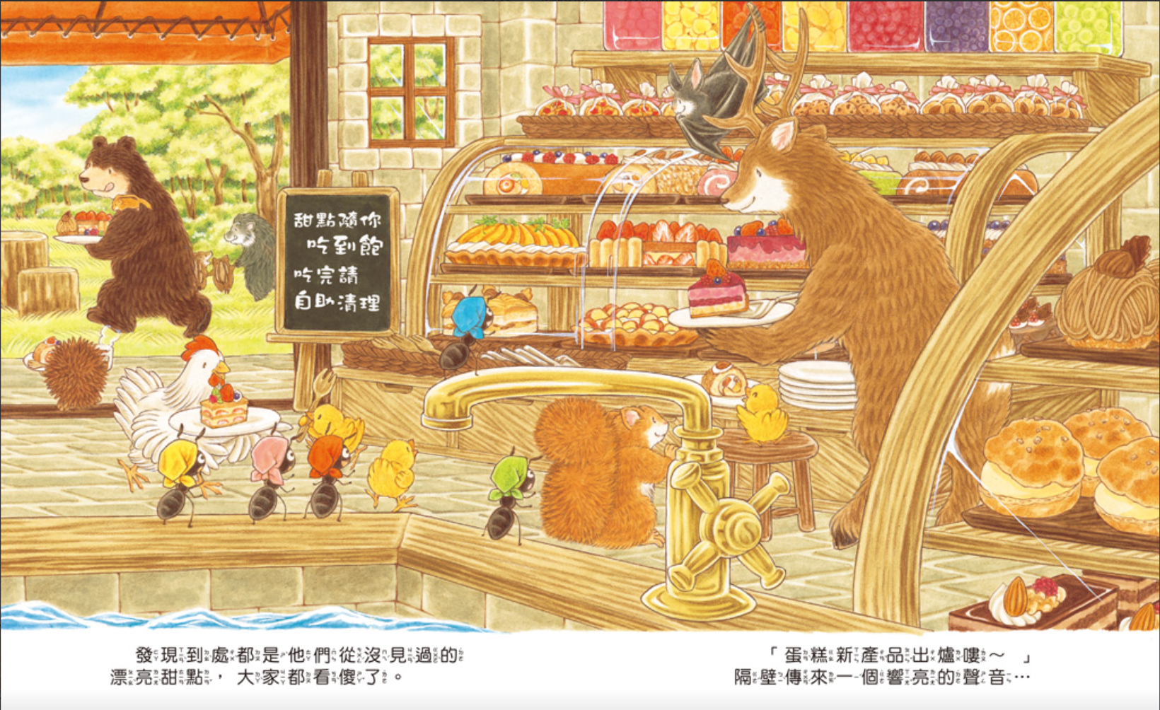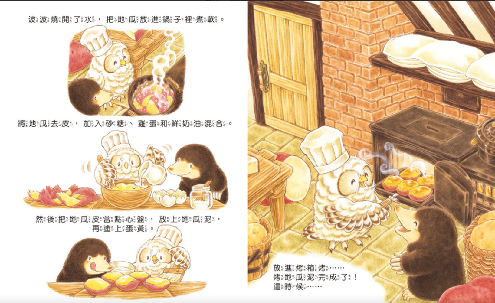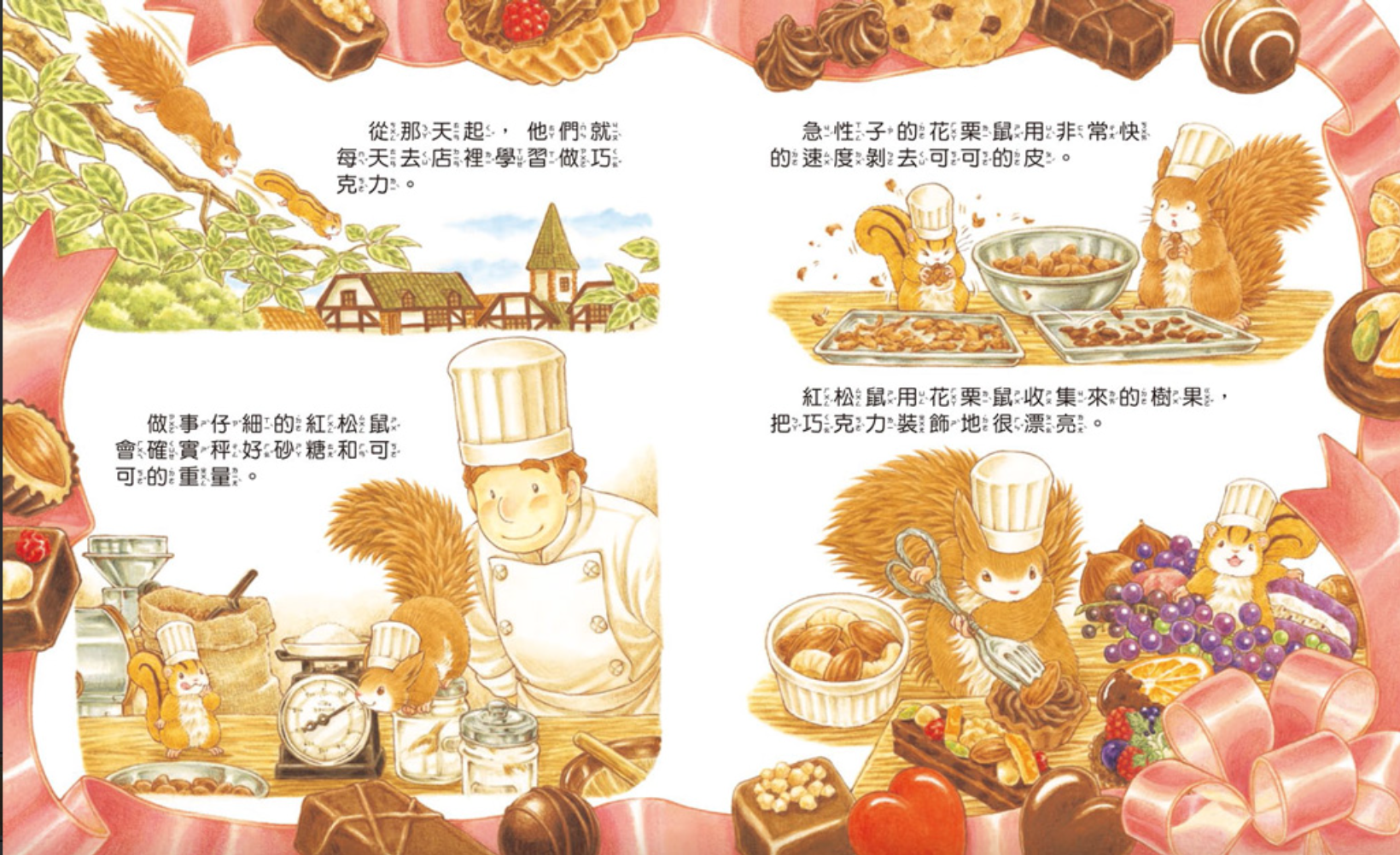 翻譯作品有《大熊與小睡鼠》系列、《大排長龍》系列、《小小的小小的》系列、《櫟樹森林的松鼠學校》、《櫟樹森林的學校才藝表演》、《刺蝟醫生》、《刺蝟醫生和小幽靈》、《小鼴鼠和蟬寶寶》、《老鼠奇奇》系列、《飛鼠郵差》系列等。