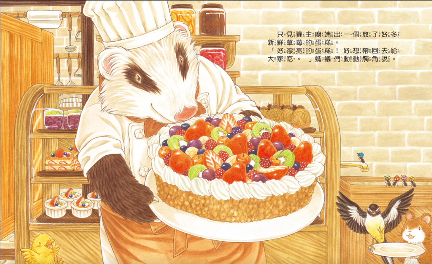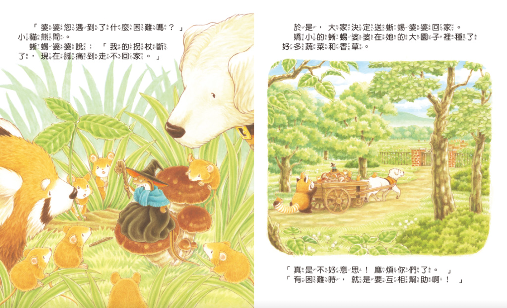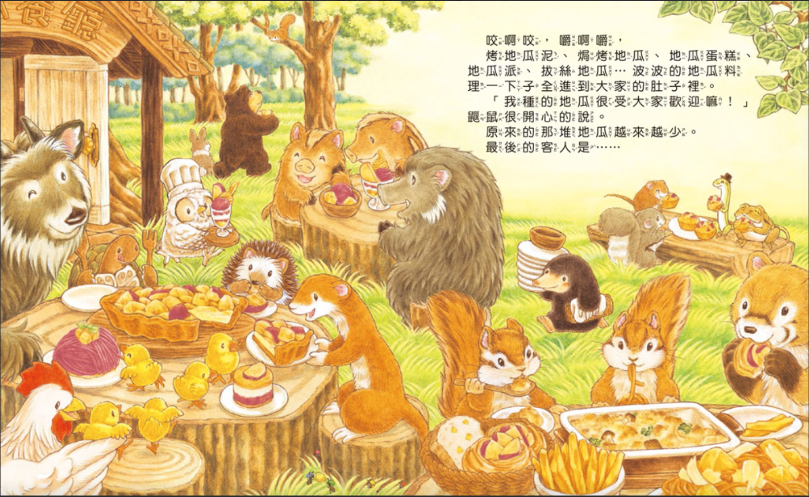 翻譯作品有《大熊與小睡鼠》系列、《大排長龍》系列、《小小的小小的》系列、《櫟樹森林的松鼠學校》、《櫟樹森林的學校才藝表演》、《刺蝟醫生》、《刺蝟醫生和小幽靈》、《小鼴鼠和蟬寶寶》、《老鼠奇奇》系列、《飛鼠郵差》系列等。