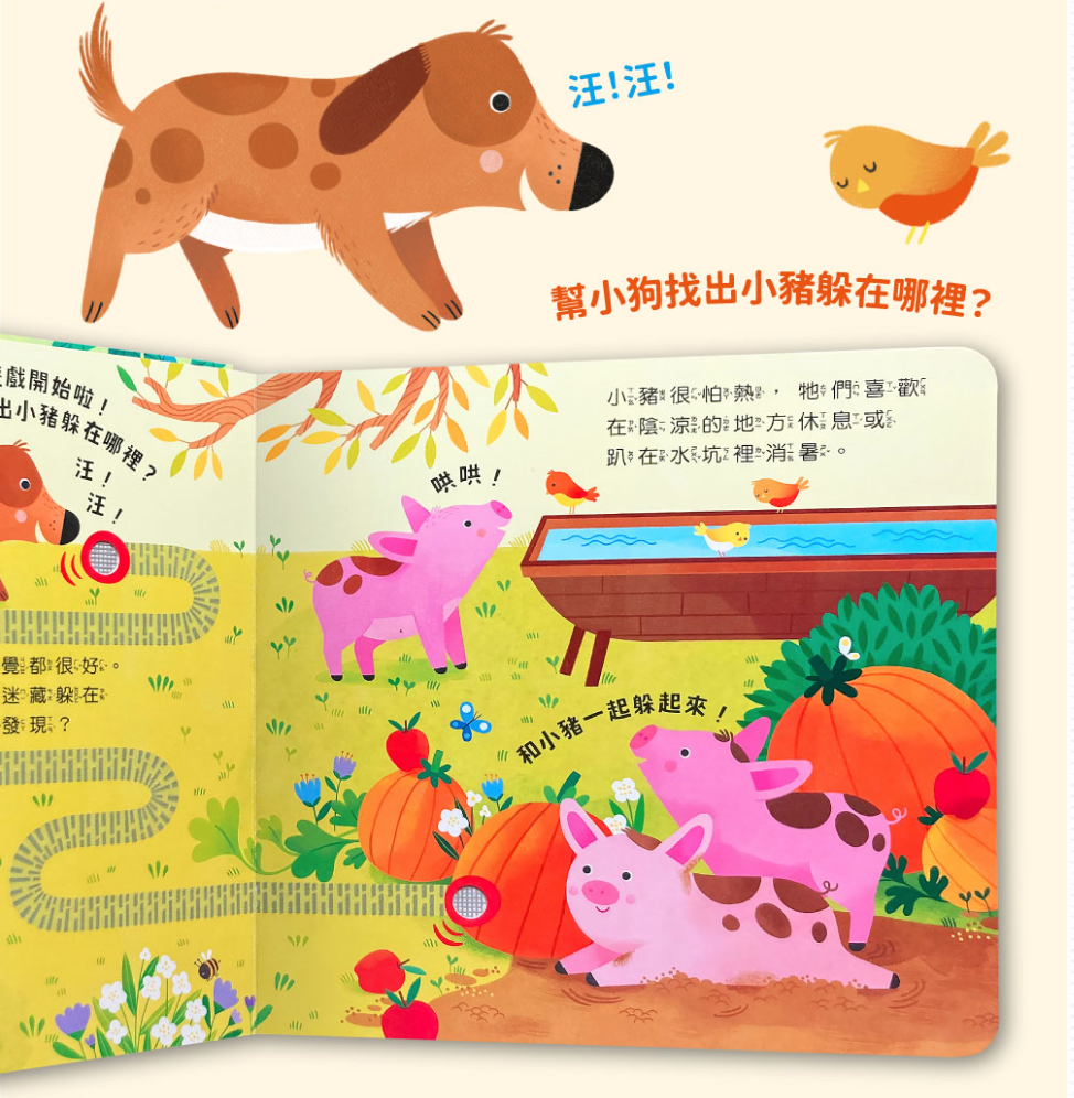 小手沿著植絨軌道,動物叫聲趣味互動,打造親子共讀時光