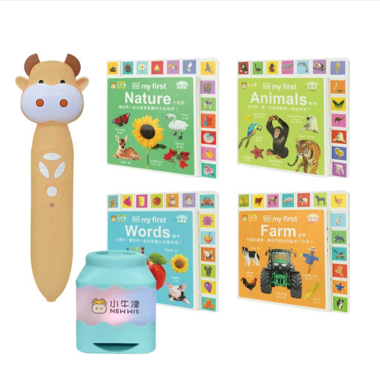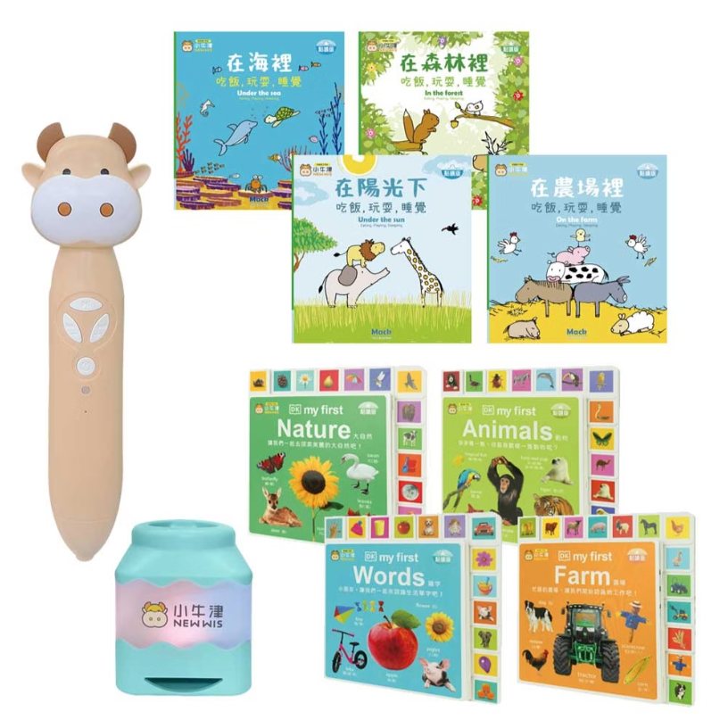 鉑金版64G奶茶牛點讀筆/音樂充電筆座典藏版+DK-my first系列-共4冊(動物/農場/大自然/識字)中英點讀