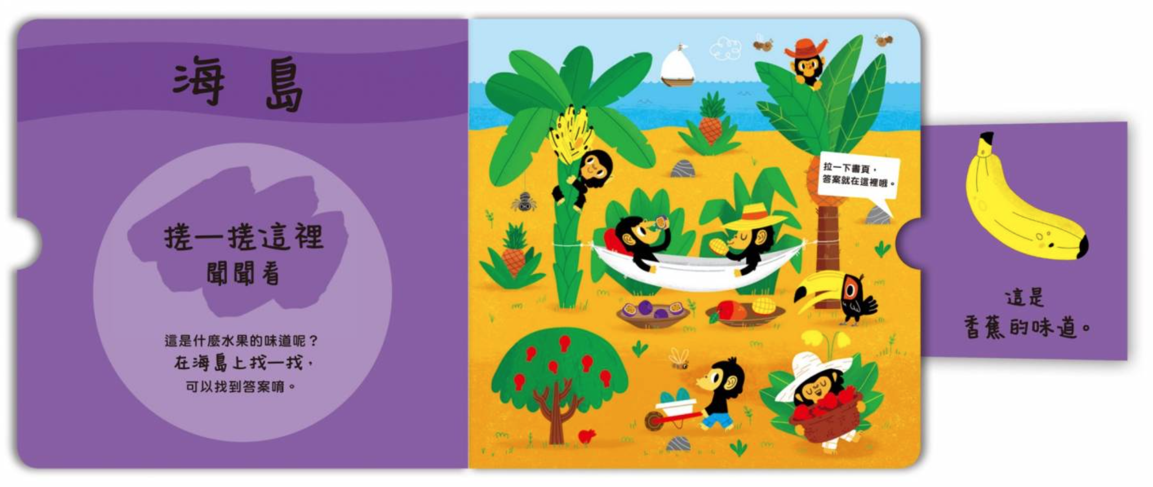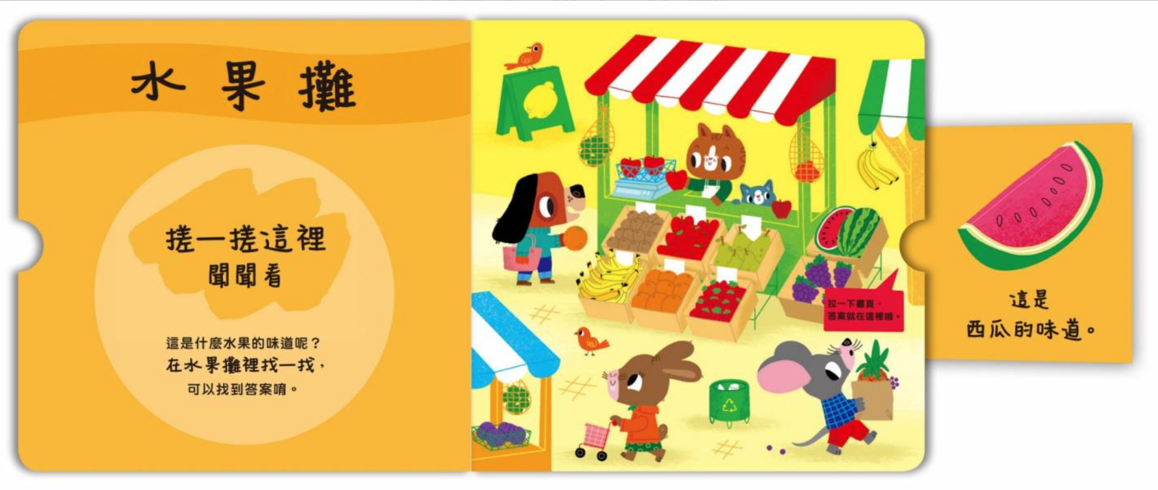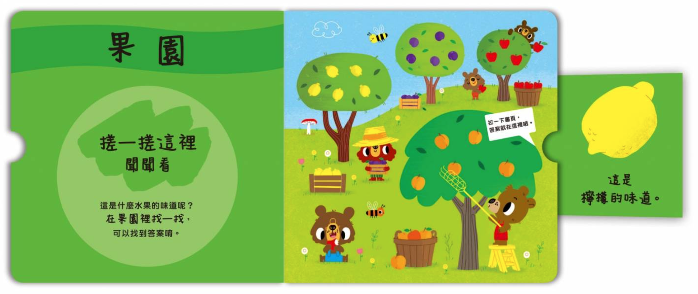 耐翻不易撕破的厚紙板手工書,香味可持續三年之久, 真是太好玩了!快來開啟《寶貝聞聞看-找一找這是什麼水果的味道》,讓親子共讀變得親密而有趣。