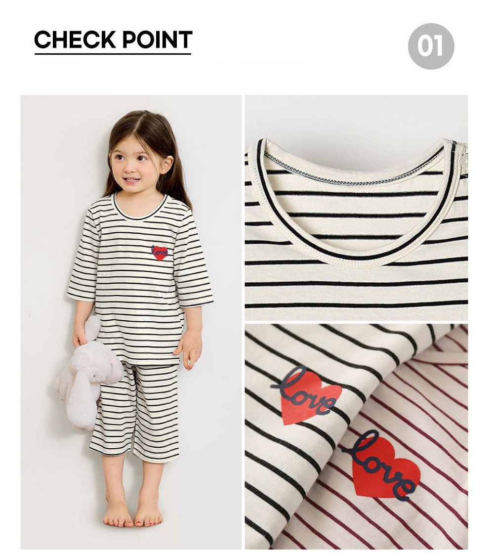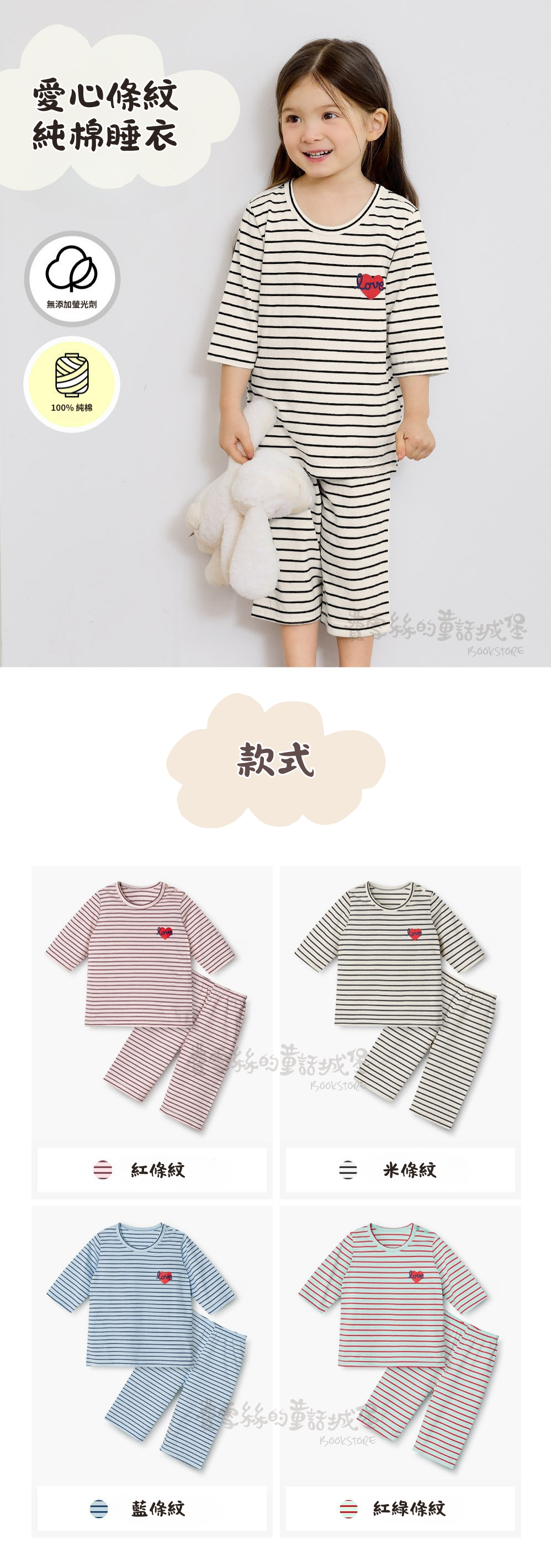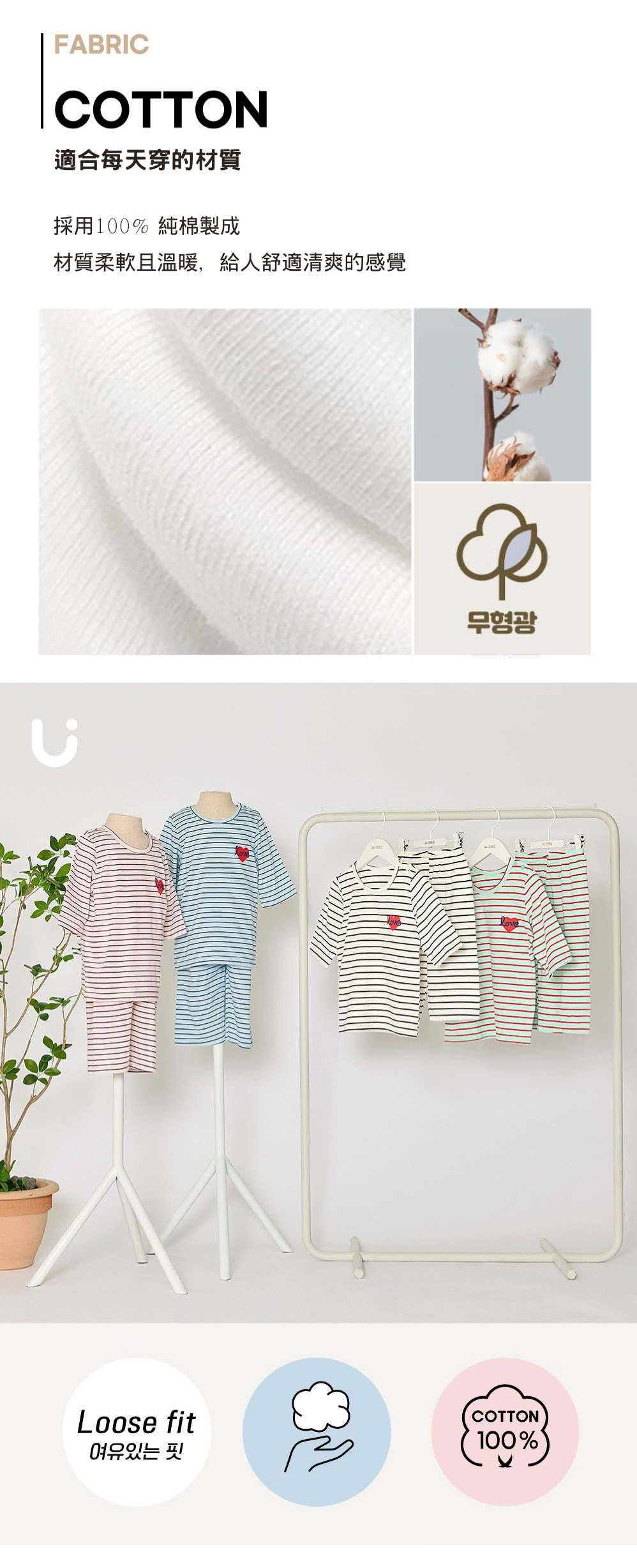 韓國unifriend兒童7分袖愛心條紋家居服套裝(共四款)